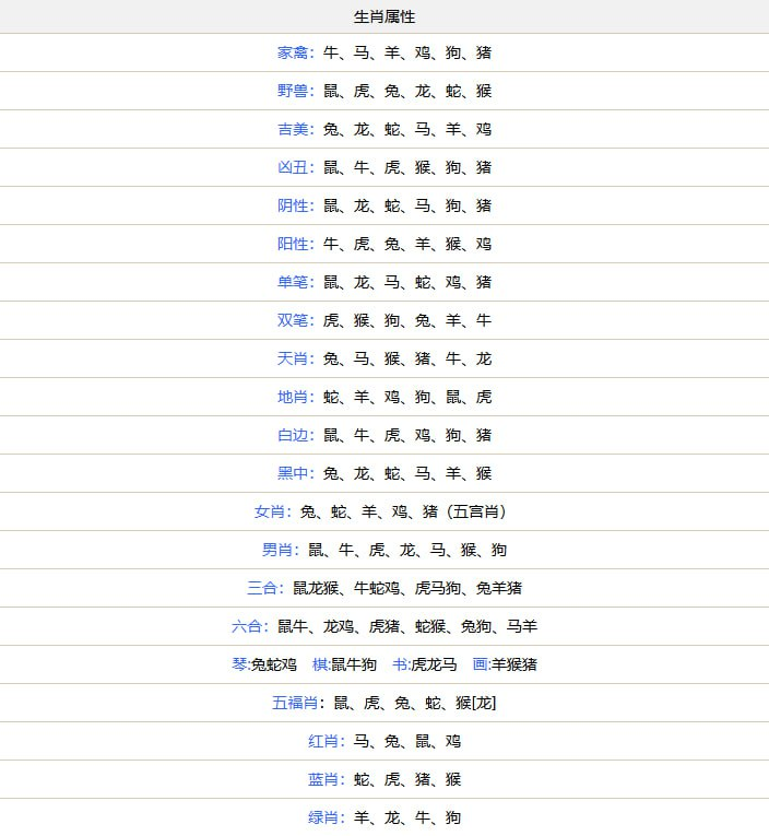 家禽:牛马羊鸡狗猪 野兽:鼠虎兔龙蛇猴